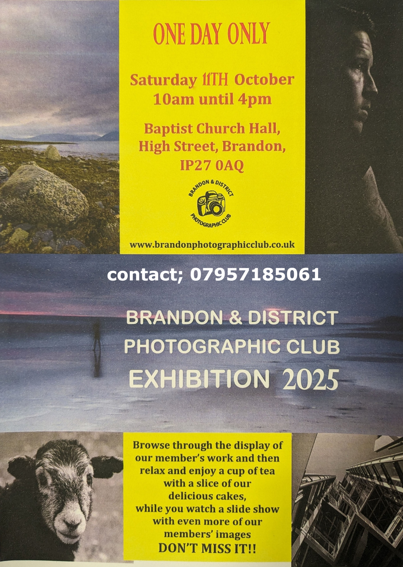Brandon and District Photographic Club are holding an exhibition of their work for one day only on Saturday 11th October 2025. For full details please see their poster here.